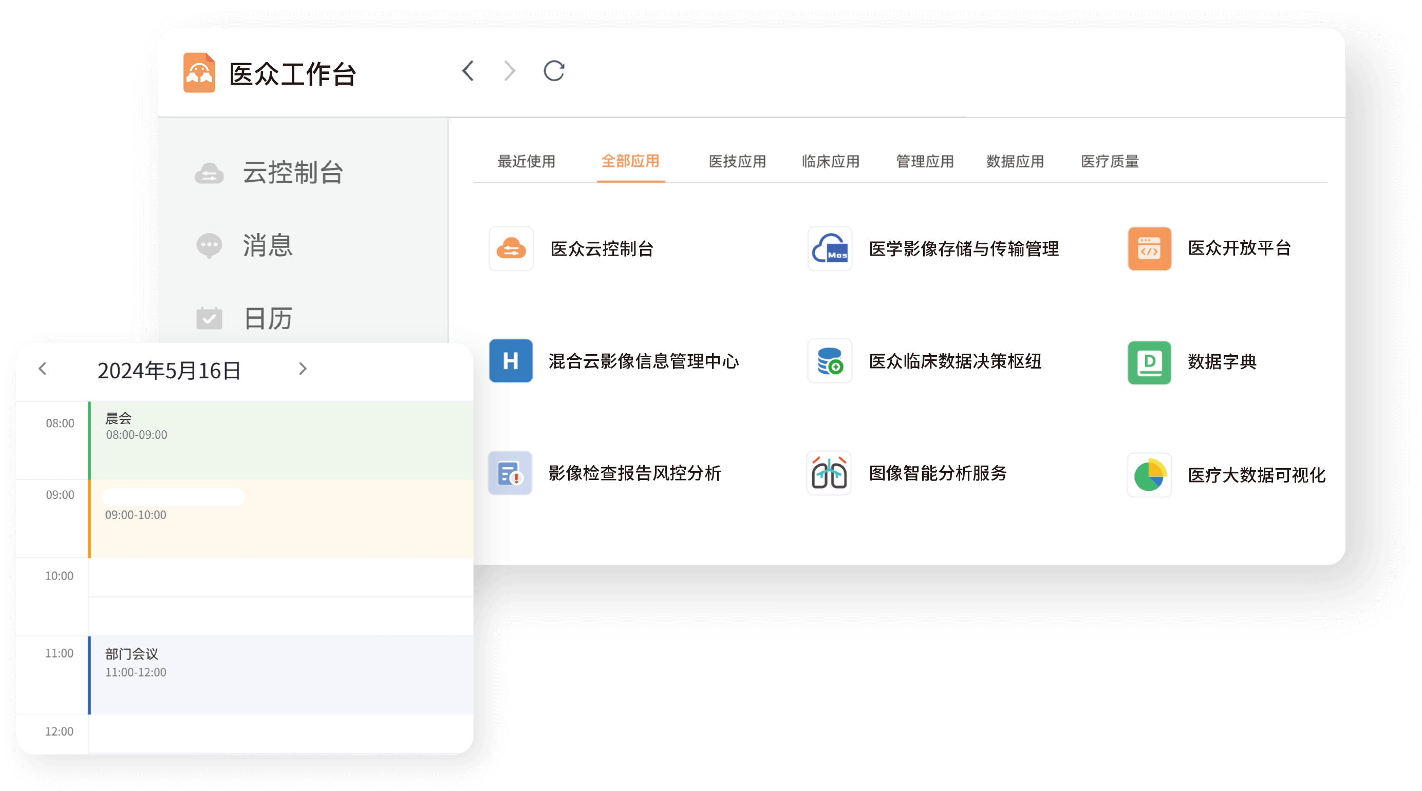 醫(yī)眾工作臺是承載醫(yī)眾全部數(shù)據(jù)能力與功能的應(yīng)用框架,采用 Docker 技術(shù)進行分布式部署。每一位用戶都擁有完整且獨立的云端節(jié)點。